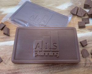 Custom logo bars molds are for a lifetime. They are stored in our facility for any future use, ensuring a lifetime of excellent, handcrafted Belgian chocolates.
