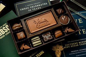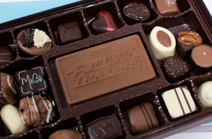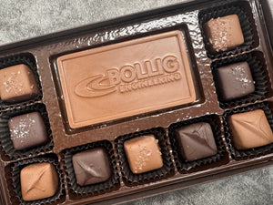 Custom logo bars can be used in our signature box that is surrounded with handcrafted, small-batch chocolates that creates a truly impressive gift. Logo bars can also be used on their own as a memorable individualized gift.